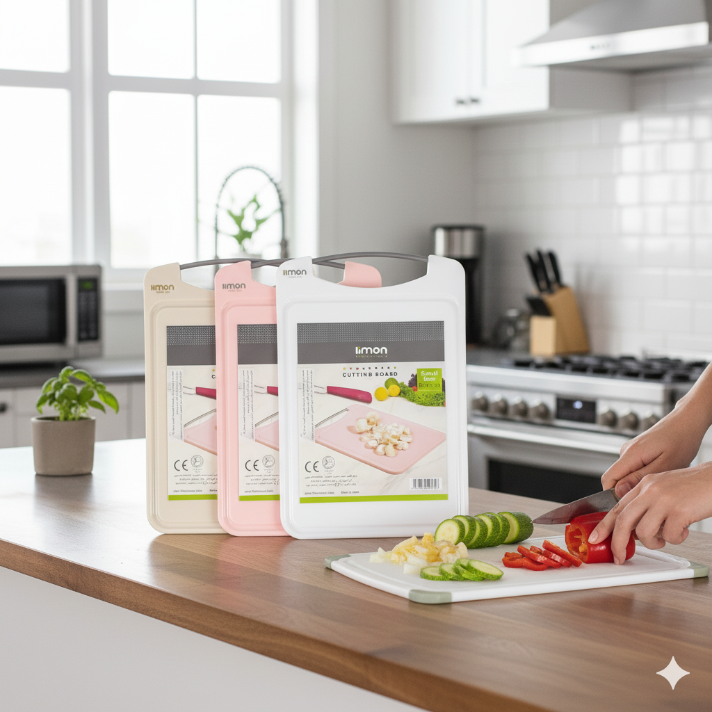 Make food prep easier and more stylish with the Essential Chopping Board by Limon. Designed with a convenient handle for easy carrying or hanging, this board also features a raised edge or juice groove to catch liquids, keeping your countertop clean. Available in two practical sizes, it’s perfect for everyday kitchen use.